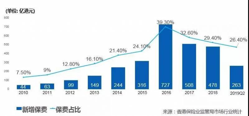 我们可以看下香港,之前整合了有关内地人群赴港购买保险的数据,在2016年前呈现喷发式增长。