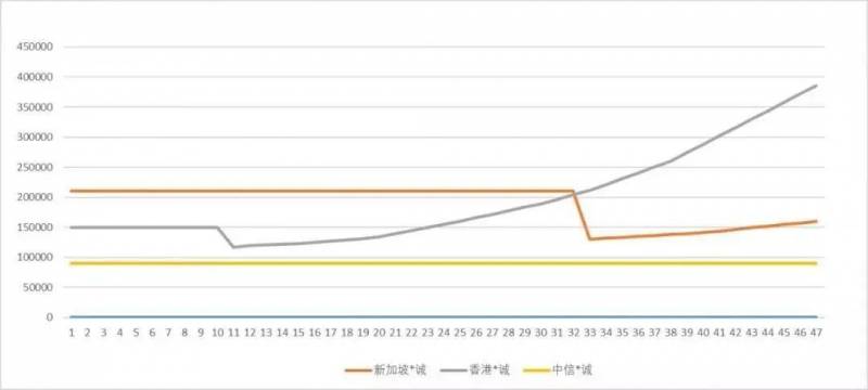 在相同保费的情况下,新加坡的保额是中国内地的2倍之多,同时也是香港的1.1倍左右。所以单从价格来看三个地方的差异其实并不大。了解产品的客户可能会发现其实新加坡偏重保障、中国香港偏向增值、中国内地就偏向平稳。