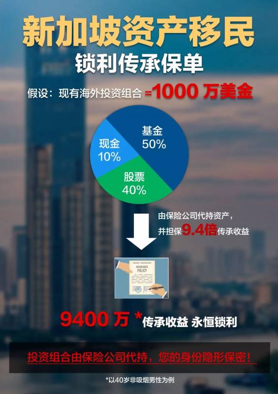 要做到以上3点,最佳的工具之一,就是利用保险公司,给你设立一张传承保单,担保给你一个传承收益额,让继承人可以受惠。以40岁男性为例,投入100万美金成本,就能得到940万美金的传承担保额9.4倍杠杆。