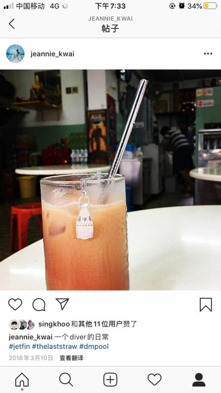 在新加坡,我们很习惯使用可重复利用的餐具,唯独吸管。一次性塑料吸管在生产出来,被人使用直至丢弃,只需要1-2分钟,因为饮料喝完之后,它就再也没有可以利用的价值了。而它却需要大自然利用500年的时间才能真正“消失”。