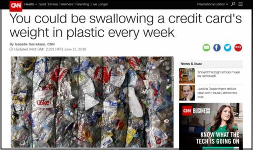 美国有线电视新闻网CNN援引澳大利亚纽卡斯尔大学一项新研究警告称,全球人均每周摄入5克塑料,相当于一张信用卡的重量。