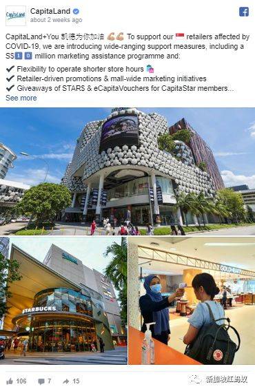 凯德集团在本月13日也推出一项名为“凯德为你加油”的计划,旨在透过一系列广泛的措施,来帮助全岛超过3500间的合作方度过难关。包括: