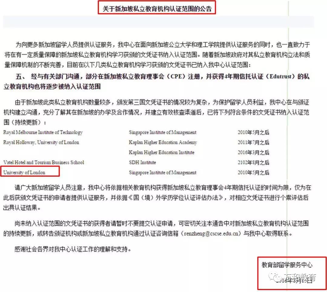 中国教育部文凭认证2018年,教育部批准认证了2010年5月之后所有由SIM颁发的伦敦大学文凭证书,从此持有该文凭证书的同学在国内就业和各种资格认证考试方面将再无障碍。