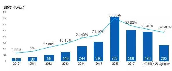 我们可以看下香港,之前整合了有关内地人群赴港购买保险的数据,在2016年前呈现喷发式增长。