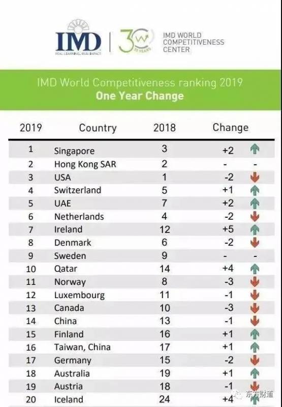 2019年5月,瑞士洛桑国际管理发展学院(IMD)发布《2019年世界竞争力年报》,排名显示,新加坡超越中国香港和美国,9年来首次获评全球最具竞争力经济体。
