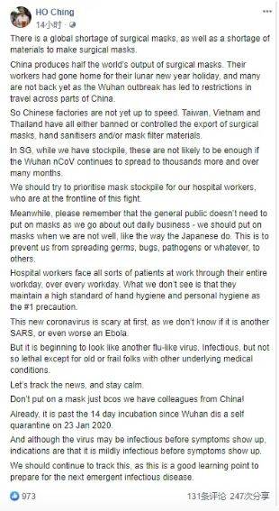 近日,何晶夫人在脸书上科普了新加坡《传染病法》...