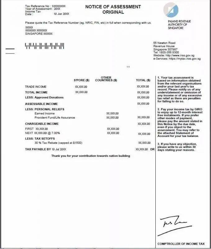 完成申报后,你会收到税务局会出具的缴税通知说明(Notice of Assessment),并要在一个月之内缴纳相关税款,否则会面临罚款。