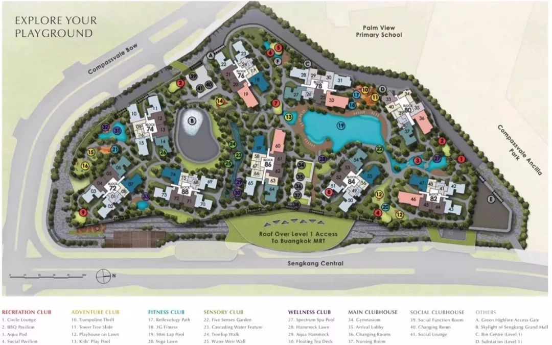 除此之外,住户可通过地铁(三站范围内)或公共运输前往周边包括盛港购物中心勘宝坊(Compass One)、利达广场(Seletar Mall)和豪阁林购物廊(Hougang Green Shopping Mall)、水滨坊(Waterway Point)和NEX等购物中心,选择非常的多。