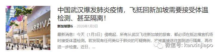 中国对于新冠肺炎疫情,采取的是果断的速决战式的措施。而新加坡,做的是未雨绸缪。早在1月2日,新加坡卫生部就向所有医疗机构和医生发出警报,要求他们提高警惕,随时注意、报告有无武汉输入的肺炎病人。