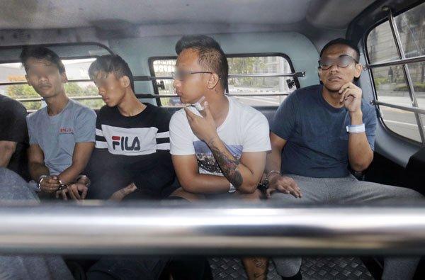 沈明辉(左起)、海卡勒、伊尔曼、丹尼士等因打架滋事,今早被控上法庭。