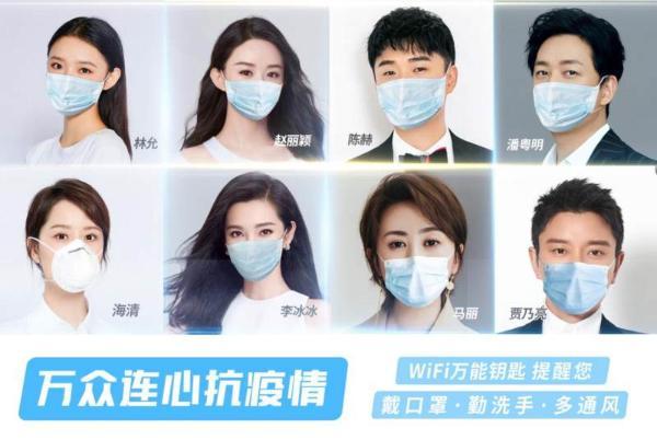 拥有8亿月活跃用户,上海连尚网络旗下的手机应用“WiFi万能钥匙”携手多名艺人发起“万众连心抗疫情”线上公益宣传活动,呼吁中国民众在疫情期间,尽量减少不必要的外出,养成戴口罩、勤洗手、多通风的生活习惯。