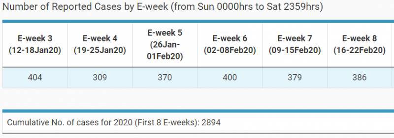 根据新加坡卫生局的统计,上周(2月16-22日),