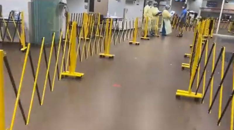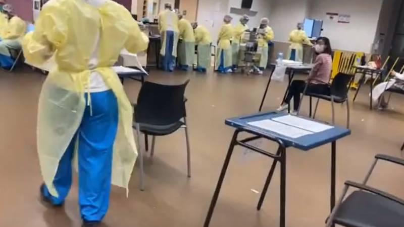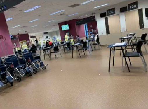 登记完就被带到了等待检测的地方是不是很像考场?保证每个人都离得远远的