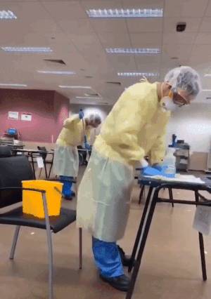 “难得一见的神级专业操作”期间还可以欣赏医护人员的消毒“实战表演”!桌椅、地面、走道丝毫不马虎的超细致消毒流程!