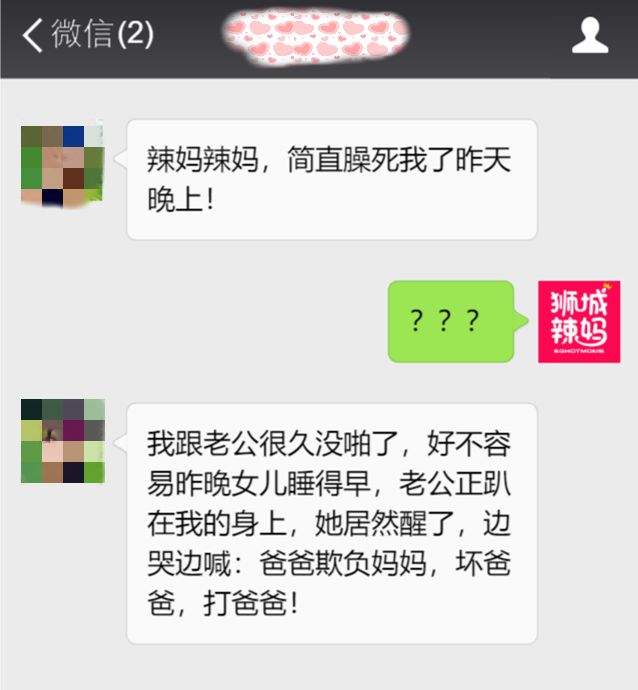 还有一位朋友表示,有次她跟老公啪啪啪,结束之后才发现4岁的女儿一直睁着眼睛看着他们,于是赶紧把孩子哄著。