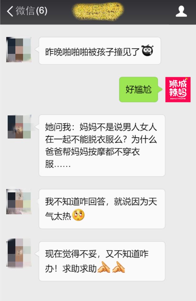 “啪啪啪”被孩子撞见,尴尬又郁闷,但又不得不面对。跟孩子讲涉及到“性”的知识,的确太难了!尺度太大怕太过火,尺度太小又怕孩子不明白,所以干脆搪塞过去。因此,被孩子撞见“啪啪啪”,很多父母都会有以下的表现: