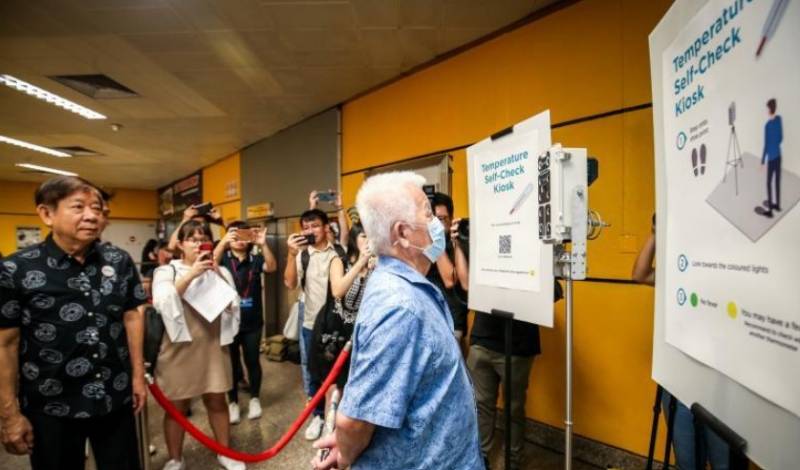 新加坡地铁站试用新型温度仪!让乘客能够自己量体温
