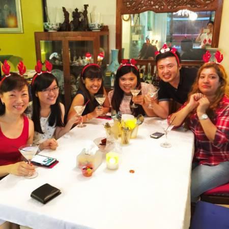 陈世忠(右2)在新加坡工作生活2年虽工作忙碌,偶尔也会和同事及友人聚餐聊天,纾解生活压力。