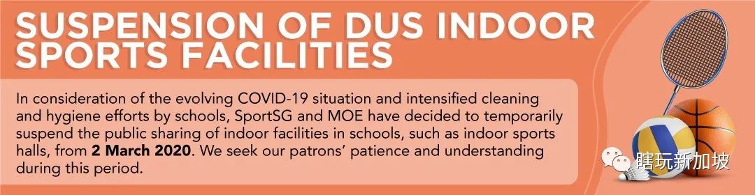 新加坡ACTIVE SG官宣,考虑到不断变化的COVID-19形势,以及学校需要加大清洁和卫生工作的力度,新加坡体育部和教育部已决定从2020年3月2日起暂时停止公众租用/共享学校室内设施,例如室内运动场。