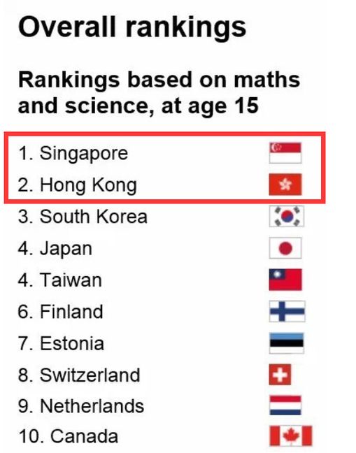 既然考虑留学,教育质量自然是家长们首要考虑的因素。根据全球经济合作与发展组织(OECD)统计并公布全球最大规模的中小学基础教育排名,亚洲包揽前五,其中新加坡拔得头筹,而香港位居第二。