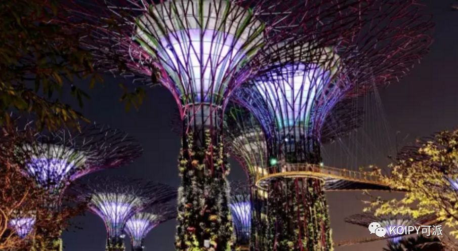 滨海湾花园 Gardens By The Bay由滨海南花园、滨海东花园和滨海中花园三个风格各异的水岸花园连接而成。