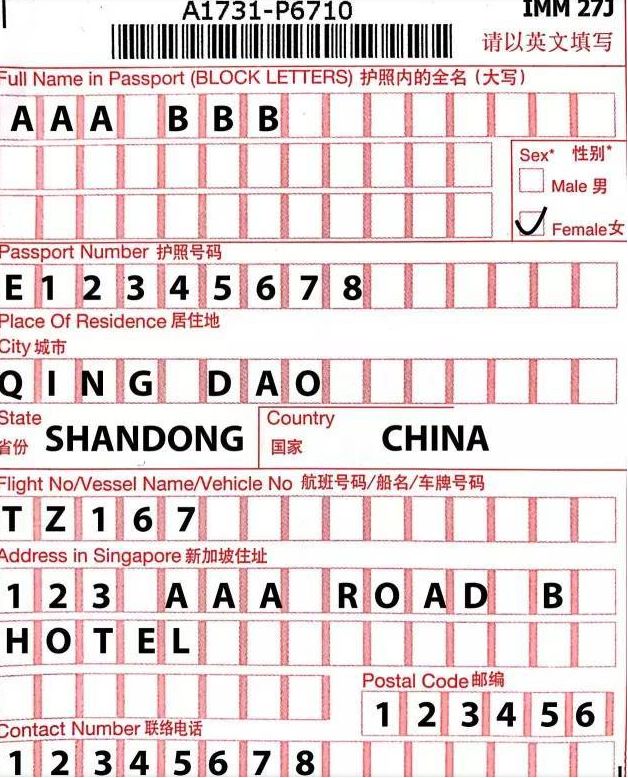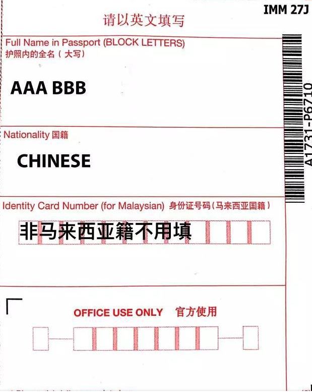 入境卡样本参考