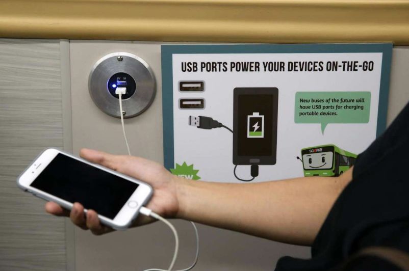 在巴士的内部也有一些小设计,比如部分巴士内有USB端口可供乘客充电哦!