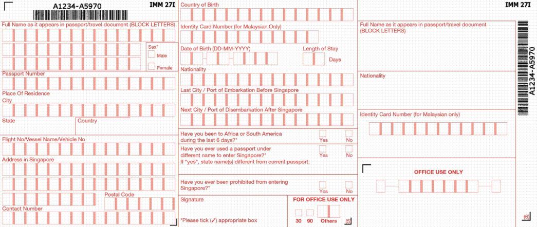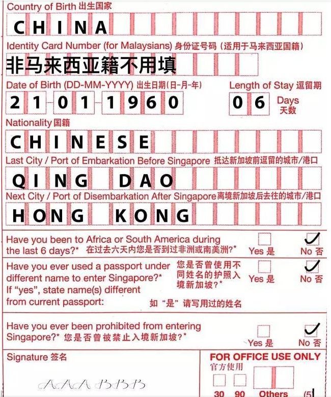 它是新加坡移民局用来记录、审核出入境人员的重要文件,也是旅客出入新加坡的凭证。