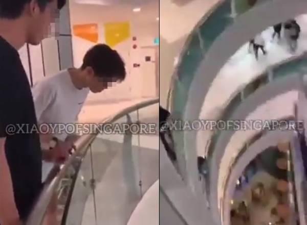 (新加坡3日讯)两少年在商场5楼往下吐口水,还拍视频上网,遭网民炮轰:“越来越过分。”
