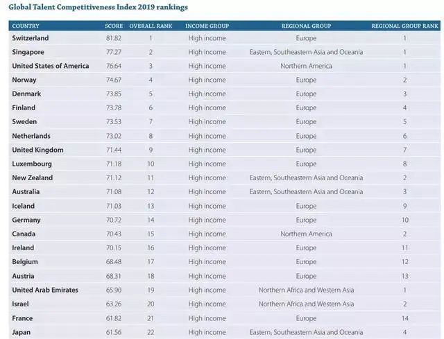 新加坡长期以来一直是外国人工作和生活的首选之地,也是国际人才最受欢迎的国家!根据全球最大的人才服务公司Adecco发布的《2019年全球人才竞争力指数报告》,新加坡排名第二,仅次于瑞士。