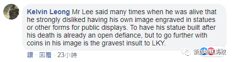“李光耀生前说过很多次,他非常厌恶自己的形象出现在铜像或以其他方式展出……把他的肖像印在纪念币上根本是对李光耀的最大侮辱。”