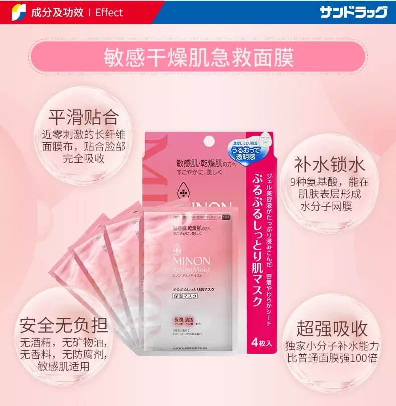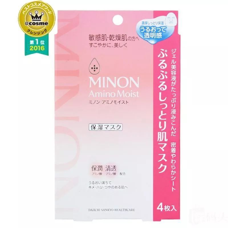 品牌:Minon名称:氨基酸面膜产地:日本规格:22ml*4片/盒使用:清洁面部后适合人群:敏感肌、干燥肌