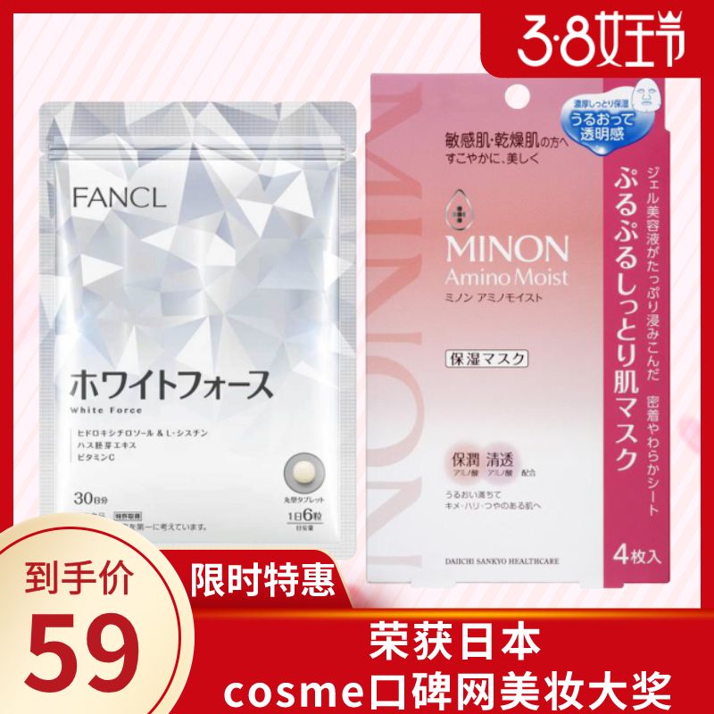 【Fancl美白丸+Minon面膜】黑黄皮、干皮、敏感肌大救星 市场价:S$ 89.8/组现价:S$ 59/组