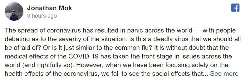 Jonathan Mok的案件还在继续侦察,希望他的凶手早日能够被绳之以法,在面对疫情的关键时刻,全世界需要的是团结合作,大家共同携手抵抗疫情,而不是因为肤色对他人指指点点,甚至恶言相向。截至目前,Jonathan Mok在Facebook上发布的这则贴文已被分享1.8万余次,获得了2.6万多个赞。不少网友都为他的勇气点赞,并对他的身体状况表示关心。