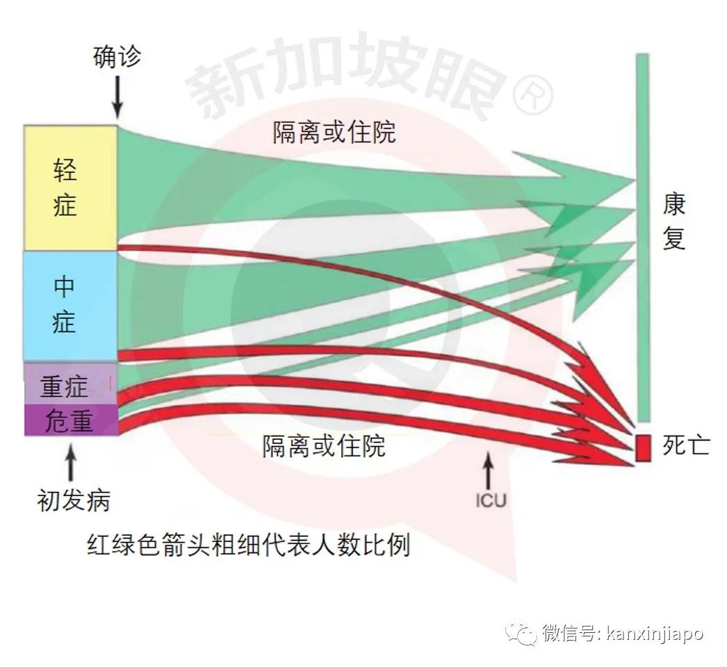 (方舱医院一角)3.新冠诊断能力目前,中国每周可生产160万个新冠病毒检测试剂盒,一天内即可给出测试结果。在全国范围内,凡是发烧就医的人都要进行病毒筛查,在远离武汉的广东省,已经有32万人接受了病毒检测,其中0.14%的人呈阳性。4.新冠感染后出现的各类症状比例绝大多数感染者会出现症状,无症状感染者病例很少见,而且大多数人在感染后的几天里都会生病。最常见的症状是发热(88%)和干咳(68%),疲劳(38%)、咳嗽有痰(33%)、气短(18%)、喉咙痛(14%)、头痛(14%)、肌肉疼痛(14%)、寒战(11%)也很常见。恶心呕吐(5%)、鼻塞(5%)和腹泻(4%)发生率较低。 而新加坡昨天确诊的70岁爷爷(第109例),就是个只发烧不咳嗽的病例。值得一提的是,流鼻涕并不是新冠的症状之一。5、新冠感染后的死亡率对中国44672例感染者进行调查后发现,病死率为3.4%。死亡受年龄、过往身体状况、性别,特别是医疗体系效率的强烈影响。死亡数据反映的是截至2月17日中国的情况,未来的情况可能会大不相同。
