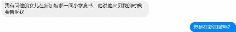 两人如胶似漆,几乎每天都要联系,时间空间都无法阻隔两颗沸腾的心,男友告诉Ella,他的父母和一个妹妹,还有他的女儿住在新加坡bukit batok,他希望以后带Ella到新加坡来见他的家人。