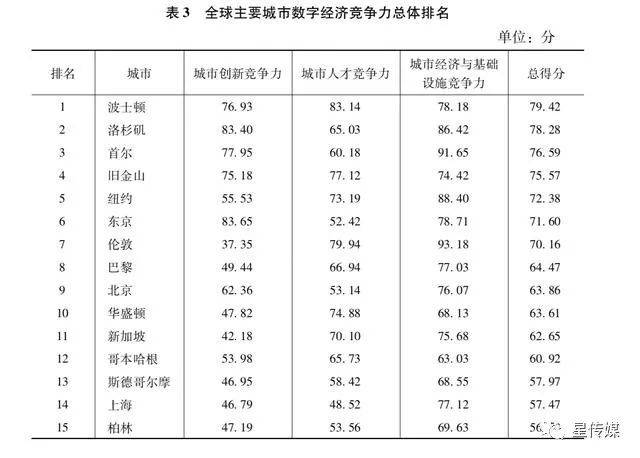 《报告》显示,当前全球城市层面的数字经济竞争力格局为以美国占据绝对优势地位,欧洲发达国家在城市创新竞争力与人才竞争力方面实力雄厚,亚洲新兴经济体国家的城市在经济和基础设施竞争力方面以后来居上为主要特征。