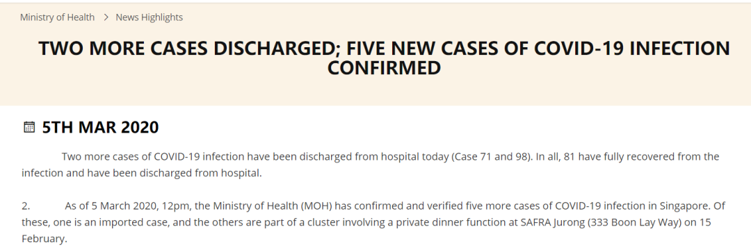 刚刚!新加坡宣布新增5个新冠肺炎确诊病例!目前新加坡已经出现新的感染群,感染群包括莱佛士书院学生,以及他的女家属。而新增的4名病例均出自此感染群,他们在2月15日曾到战备军人协会俱乐部用餐。还有一人是土耳其航班的一名确诊乘客。
