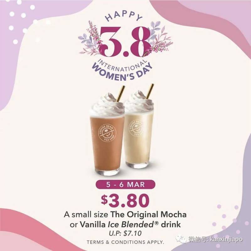 时间:即日起至3月8日网址:官方APPThe Coffee Bean & Tea Leaf为了庆祝国际妇女日,专为女士特供的两款饮品,现在只需3.80新币。