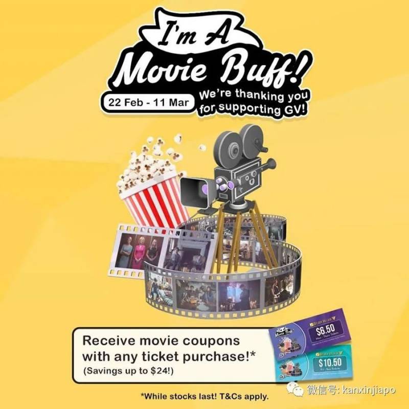 时间:2月27日至3月31日地址:Jewel Changi AirportGolden Village购买任何电影票均可获得价值6.50新币(原价9.50新币)或10.50新币(13.50新币)的工作日/周末电影优惠券,最多可节省24新币哦!