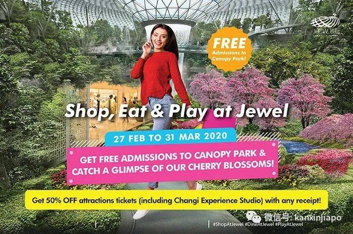 Jewel Canopy Park终于可以免费玩啦,非常适合带上熊孩子,约会,或者享受家庭时光~最重要的是!单笔消费最低10新币,就可兑换3小时停车免费券~