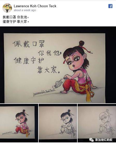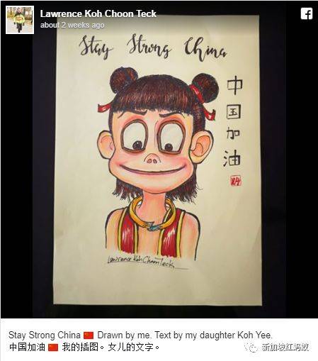 红蚂蚁猜想,许春得在这时画出此人物再配上为中国加油的文字,是否是要鼓励人们和哪吒一样,在对抗疫情时也要持有奋战到底的英勇精神呢?