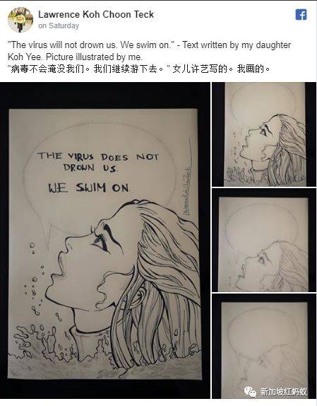 在这段防疫期间,他除了出门当义工之外,也在个人面簿上分享好几张手绘图。这些图都配上令人鼓舞的文字,这些文字有一部分是出自女儿许艺之手。