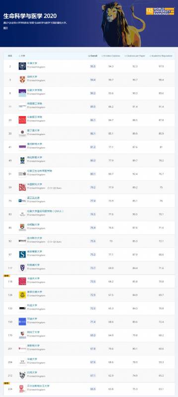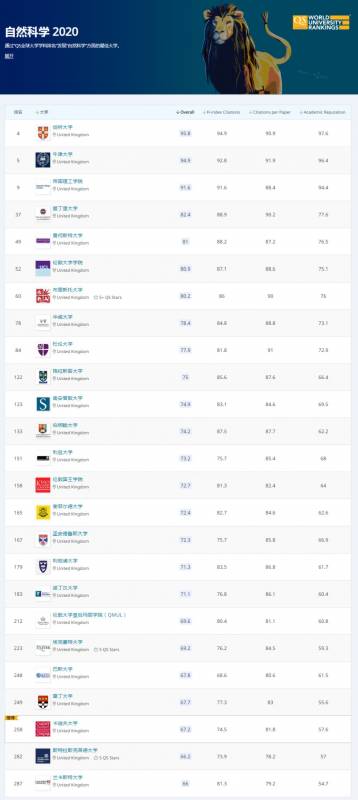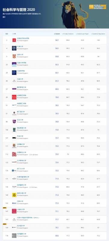 2020QS世界大学学科排名,在世界大学学科排行榜中找最适合你的大学