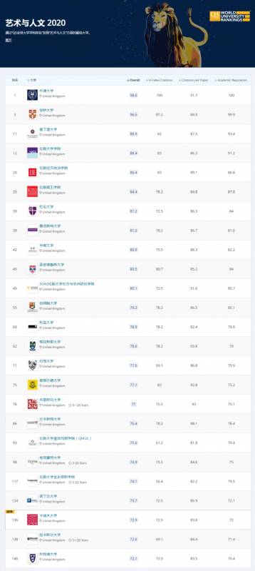 而QS昨天发布的世界大学学科排名是按照以下的4个标准进行评价:1. Academic reputation(学术声誉)2. Employer reputation(雇主声誉)3. Research citations per paper(每篇论文的引用数量)4. H-index(高校的平均学术产出和影响力)本次QS学科排名,对全球83个地区、1,368所大学的13,138个大学学科进行了权威性的比较分析。而这次排名中英国大学的排名得到整体进步,总共有306所英国大学名次上升。