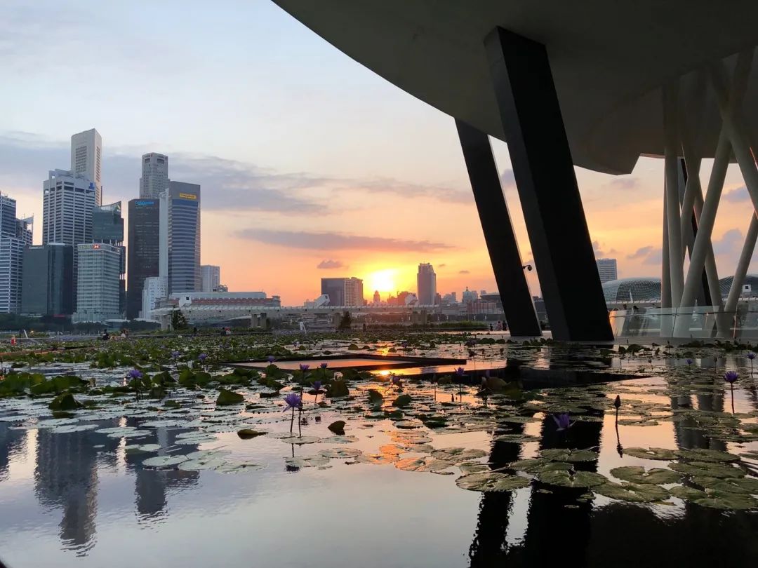 滨海湾金沙艺术科学博物馆前治愈系的夕阳