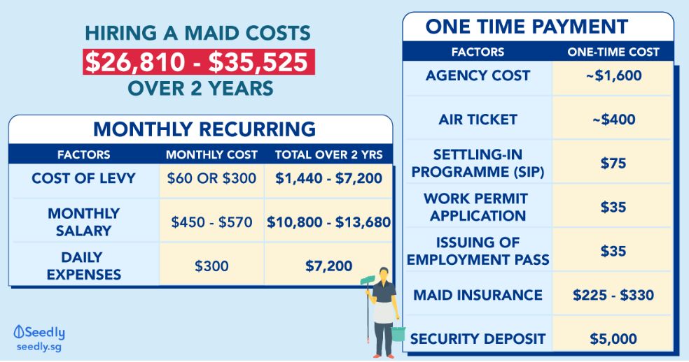 (由于大多数女佣合约为12个月或24个月,并且MOM要求所有保险公司必须有额外2个月的承保期,因此女佣保险的承保期通常为14或26个月。根据新加坡各大保险公司在2019年的保费标准,14个月的保险费用在180~200新币之间,26个月的保险费用在246~374新币之间,图源:seedly.sg)
