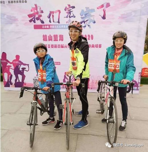 (Lawrence与儿女参加铁人三项比赛合影)