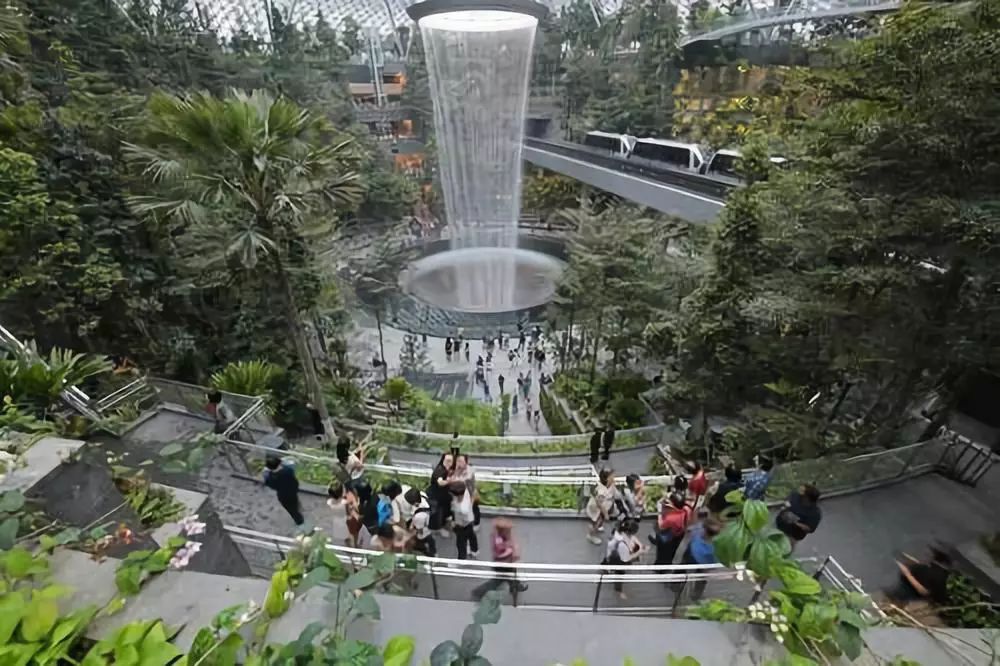 你将参观最著名的【星耀樟宜】,进入“星耀樟宜”,首先映入眼帘的就是位于建筑中央的雨漩涡(HSBC Rain Vortex)。它是目前世界上最高的室内瀑布,绚丽壮美,高达40米,四周是园林景观森林谷,其它游乐设施,如宏利天空之网、树篱迷宫、镜子迷宫也会让你流连忘返!