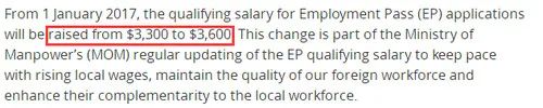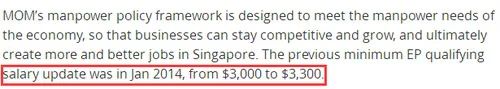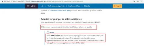 2020年5月1日起,EP准证持有人的最低薪金要求,从目前的月入3600新币上调至3900新币!也就是说对于申请人的资质审核将更加严格,申请人要有足够的资历匹配高薪职位。以确保外籍专才的资历相等于本地专才的水准。